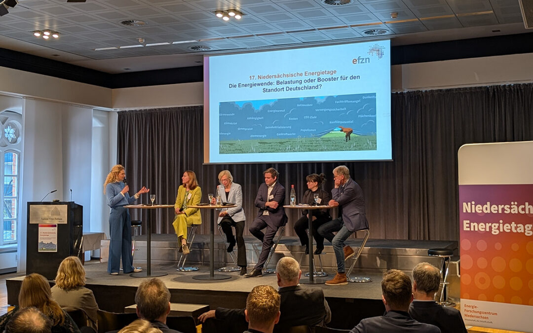 Nach einem Auftakt mit einem fachlichen Kennenlernen setzten die Begrüßung und mehrere Impulsvorträge den inhaltlichen Rahmen. Hier wurden sowohl der aktuelle Stand der energiepolitischen Diskussion als auch die Sicht der Landesregierung vorgestellt. Eine hochkarätig besetzte Paneldiskussion vertiefte die politische, wirtschaftliche und gesellschaftliche Einordnung der Energiewende. Zudem präsentierte das Energie-Forschungszentrum Niedersachsen (efzn) das Forschungsprogramm „Transformation des Energiesystems Niedersachsen“, begleitet von einer Posterausstellung.