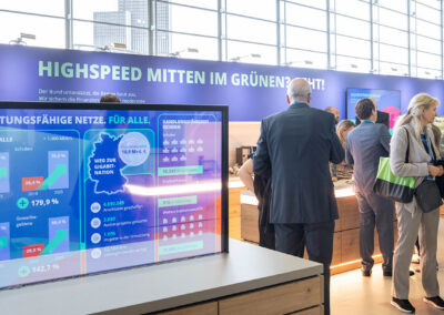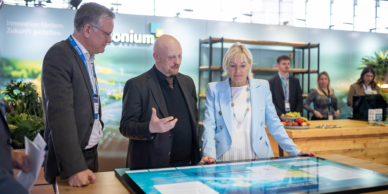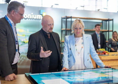 Beim Messestand von aconium auf den fiberdays konnte die Ministerin weitere Anwendungsbeispiele aus den Bereichen digitale Infrastruktur, Künstliche Intelligenz, resiliente Netze und die strategische Verbindung von Innovation, Regulierung und Umsetzung kennenlernen.